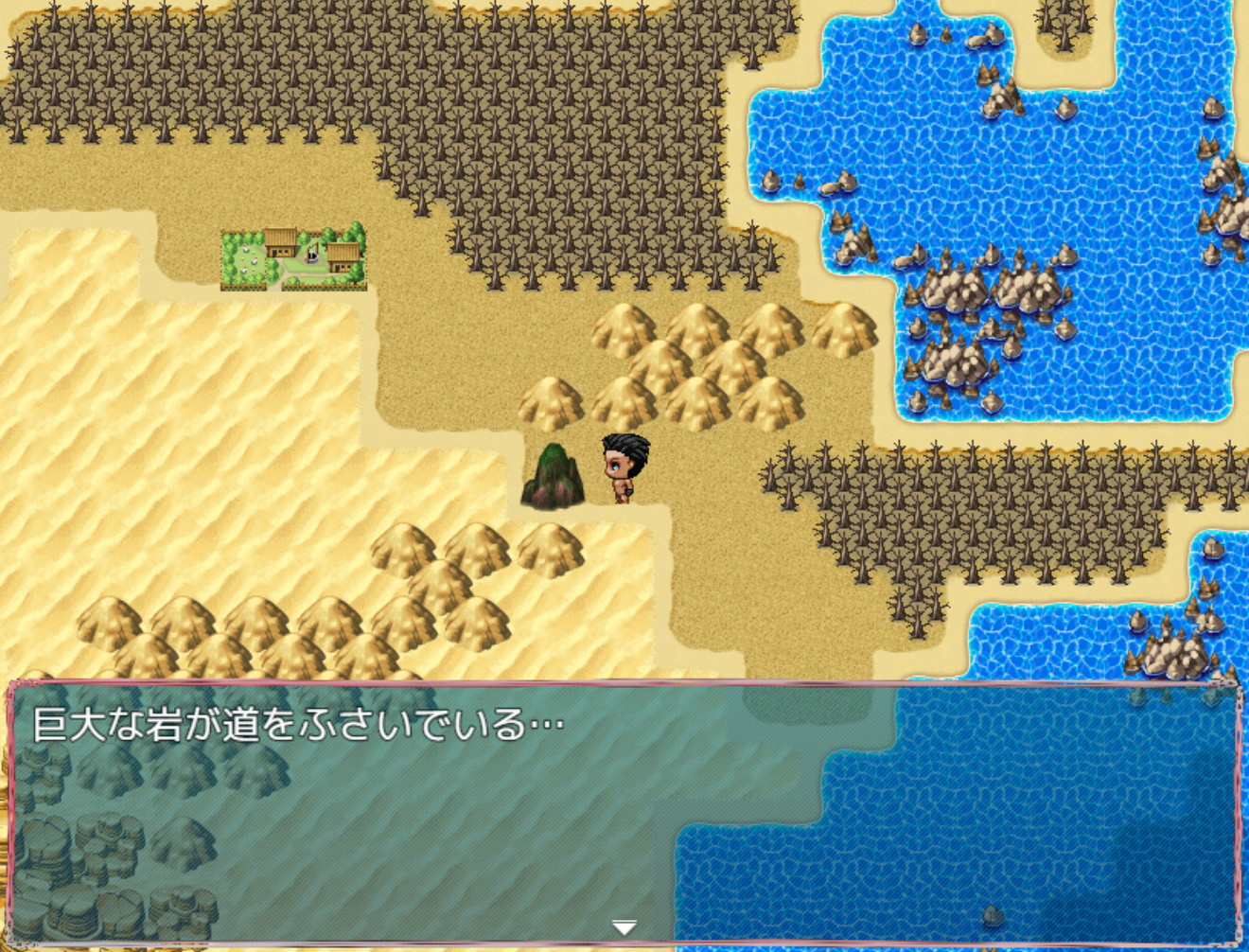 のちに左の道へ行くと、村長とのアレコレが発生、引き返して右の道(の先にある、”修行の山”)へ足を向ける事になり、あぁそうだったのか、と分かるのですが、万事そんな感じ。