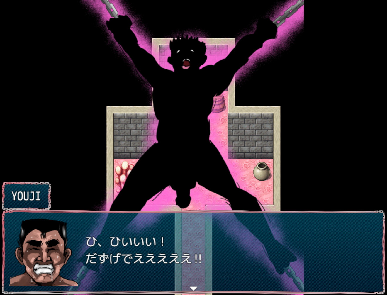 その後まったく同じトーンで、さんざ潮を噴いて気絶した娘に「おっと、こいつは治療代だ。いただいとくぜ。」と称し、アイテム:パンティをゲットするYOUJI(ちなみに使用すると最大HP上昇)に至っては、なんだその小粋な西部劇のガンマンの感じは……なんでこの後に及んで気取っておるんだ……とツッコミ不在のRPG進行の感じが。