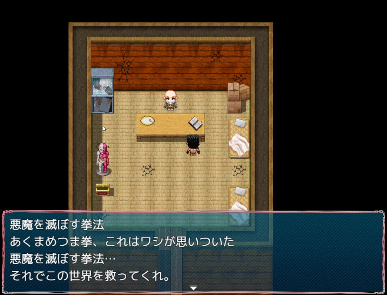 が、まぁとりあえず流れとしては荒野を行き、ボンバーYOUJIが初めての村に立ち入った時、まさに悪魔が少女を人質に取り、食糧等を要求していた……。