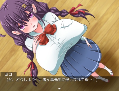 「うわぁミコさん……まじめそうな顔をして制服の下にあんなの着けてたの…」「乳首大きいからどう見たって隠れる訳ないのに……」みたいなセリフを入れられて、体育教師の一人ボケツッコミみたいのよりは、上手く強調出来たかな……と。