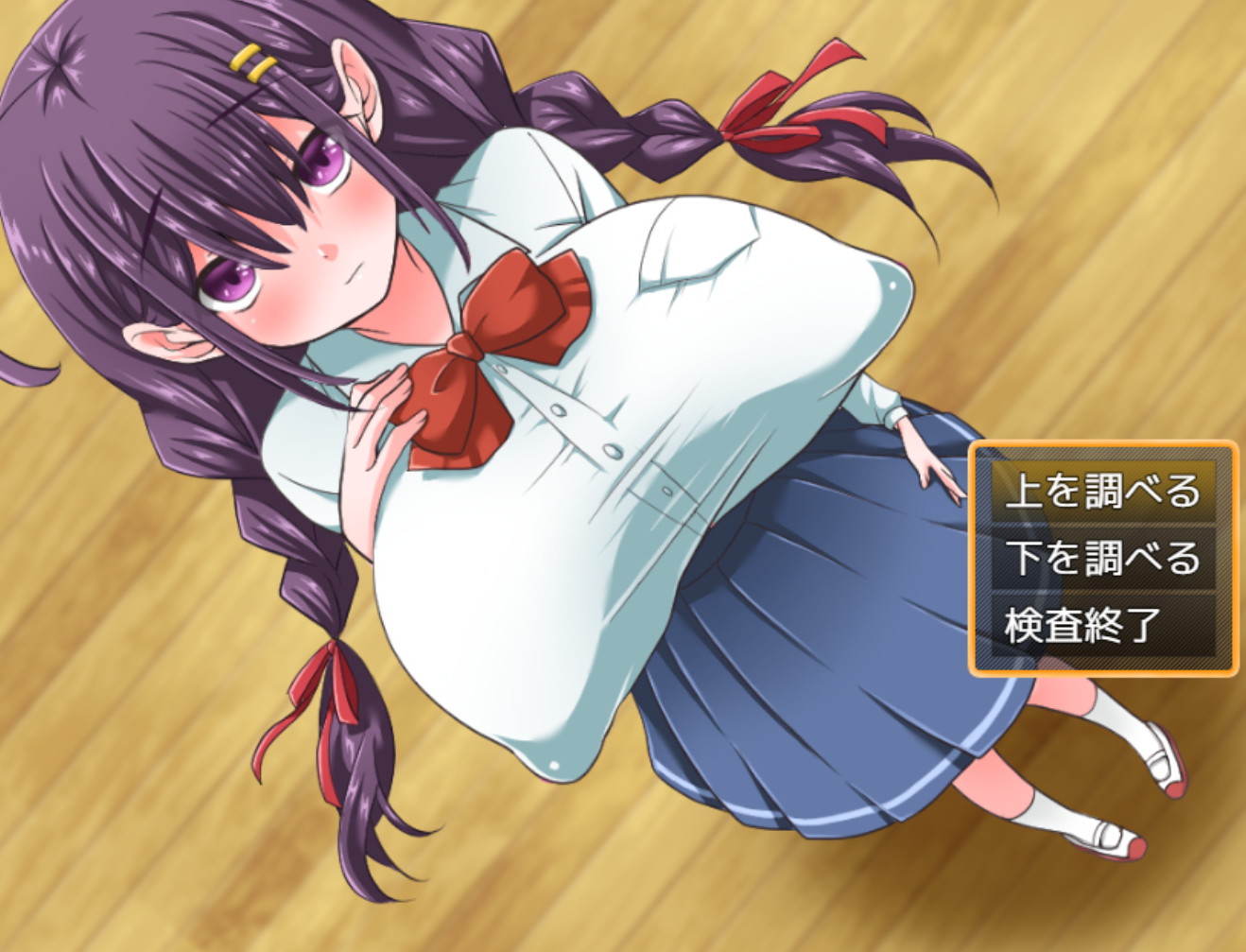 あと明るいエッチ感は薄れちゃうけど、着衣・羞恥的には(差分の反応バリエーションとしても)やっぱ身体検査は別室ではなく、皆の前で(校門でそのまま)行うべきだったかな、とも。