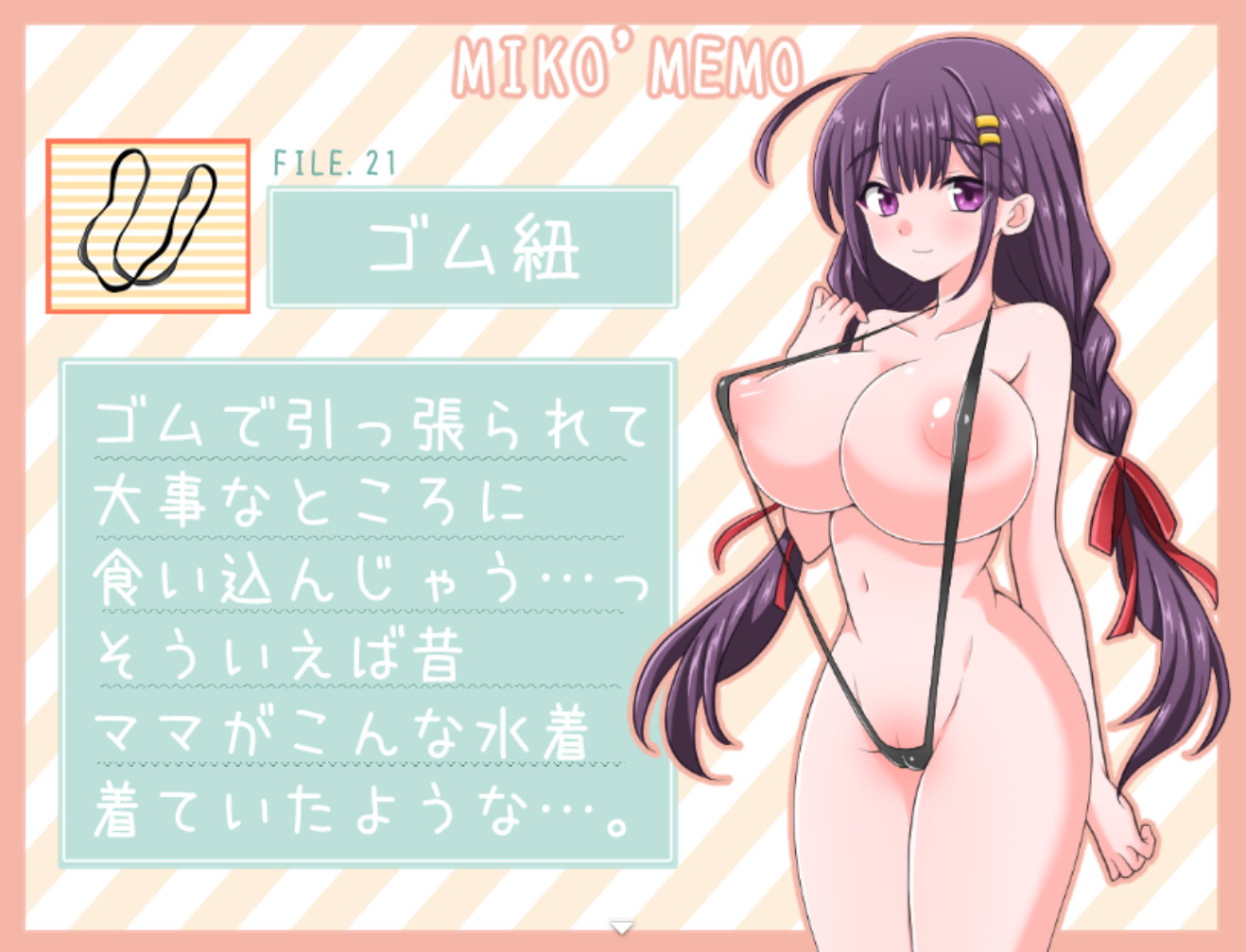 その執拗さにミコが「本当なんです! 信じてください!」とガバッと下に纏っていた下着? を見せれば、当たり前のようにお、お前……下着ってレベルじゃねえぞ……となり、下着とは何か論争も空しく、「俺が興奮するという事は、やはり下着を着けてない証拠だ!(?)」とばかり見抜きシコシコを始める先生。