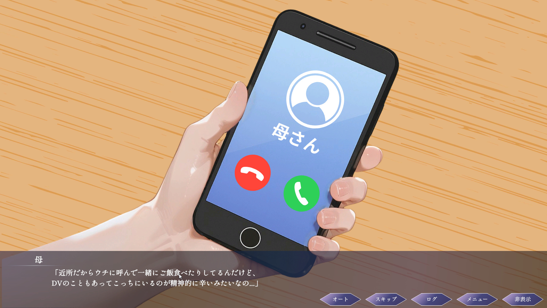 母親曰く「あんたが家を出たぐらいから、あそこの家庭はおかしくなり(経営が傾き)、父親がDVをするように。今、母親が病院に入院し、父親は逮捕となったので、あんたの所であの子を預かって欲しい」みたいな出だし。