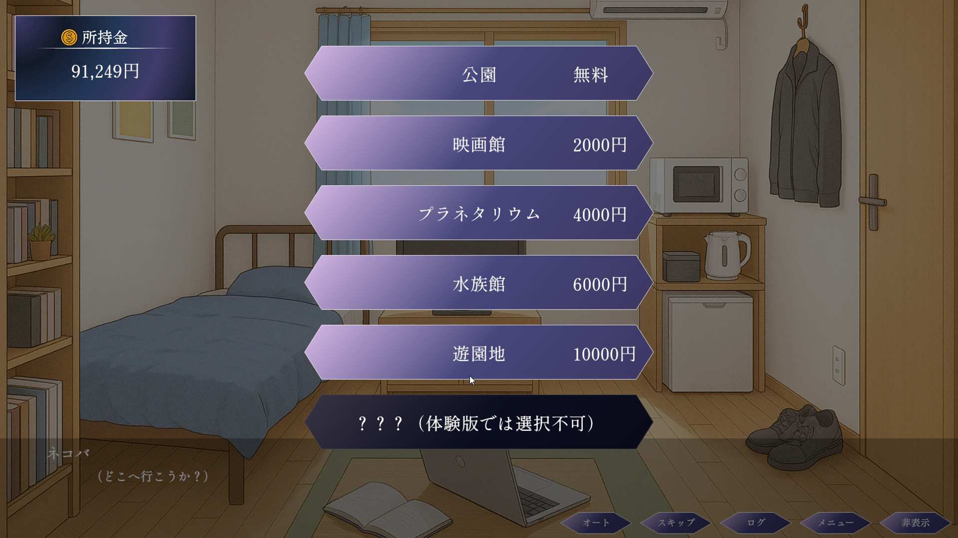 ▲明らかにあと3つの分岐の気配。そして実はメニューでチートお金入手ボタンも