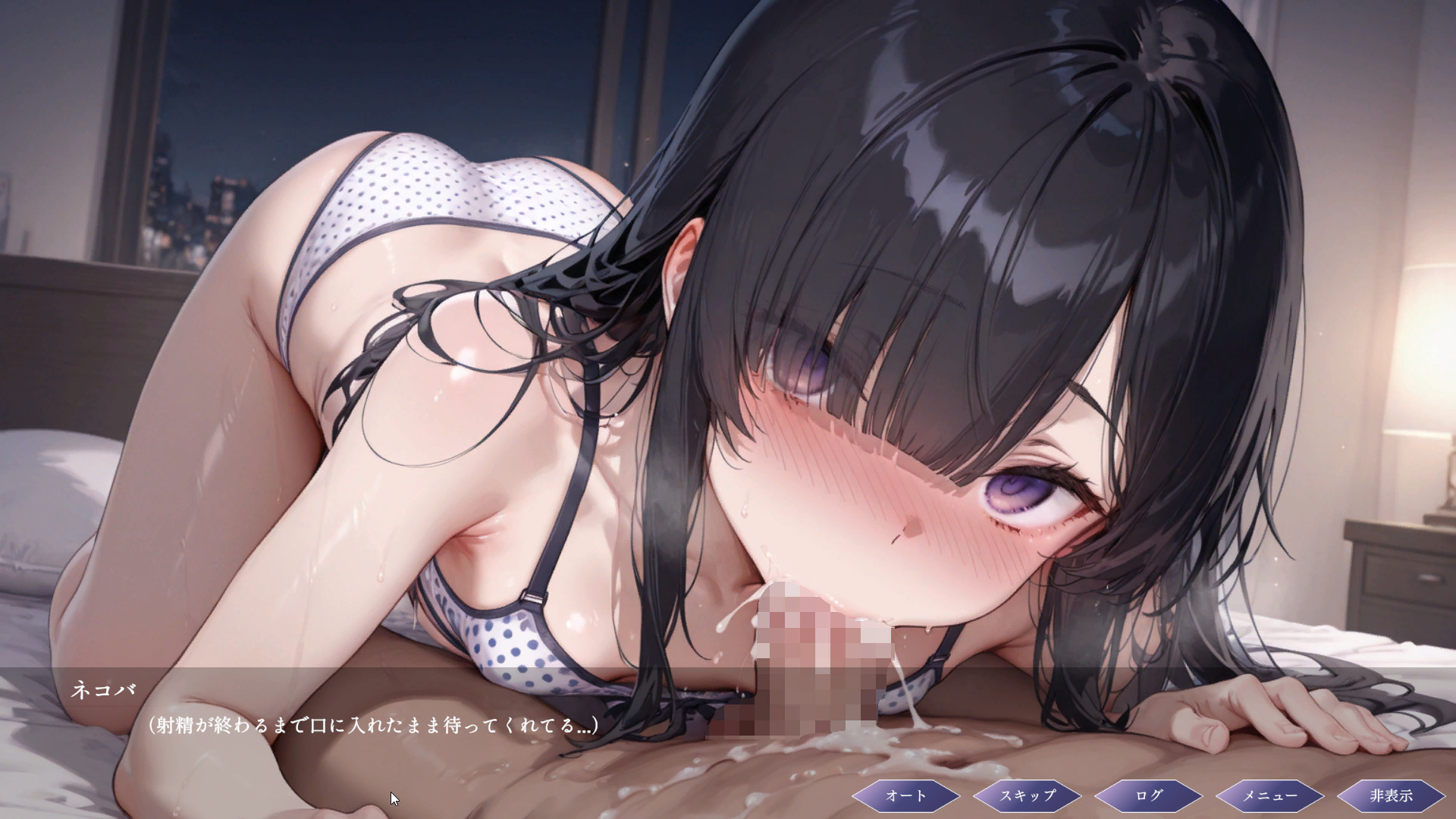 初めのH、いや性欲処理こそ手コキでしたが、2回目の日曜デート後にはおフェラと、パラメーターを上げて先に進めるほど(二人の日付を重ねるほど)、どんどんとアイちゃんはエッチに大胆になっていくようす……。
