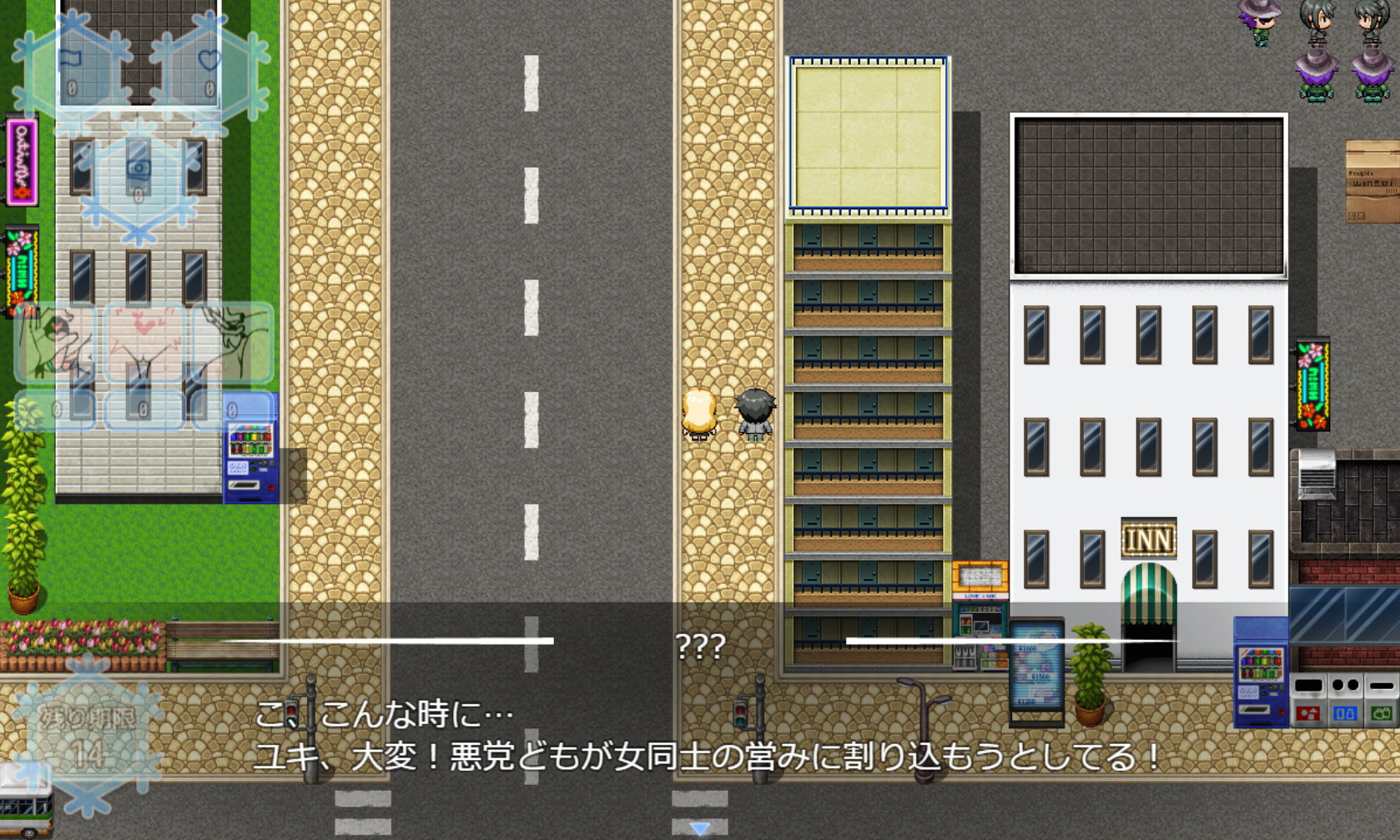 でまぁ、RPGとしての基本の流れはアンコクマリモカンさんが昔作っておられた……[守護聖人プリエール ~変身ヒロイン陵○RPG~]みたいな、変身ヒロインが街でエロを探す or 戦闘という形式。