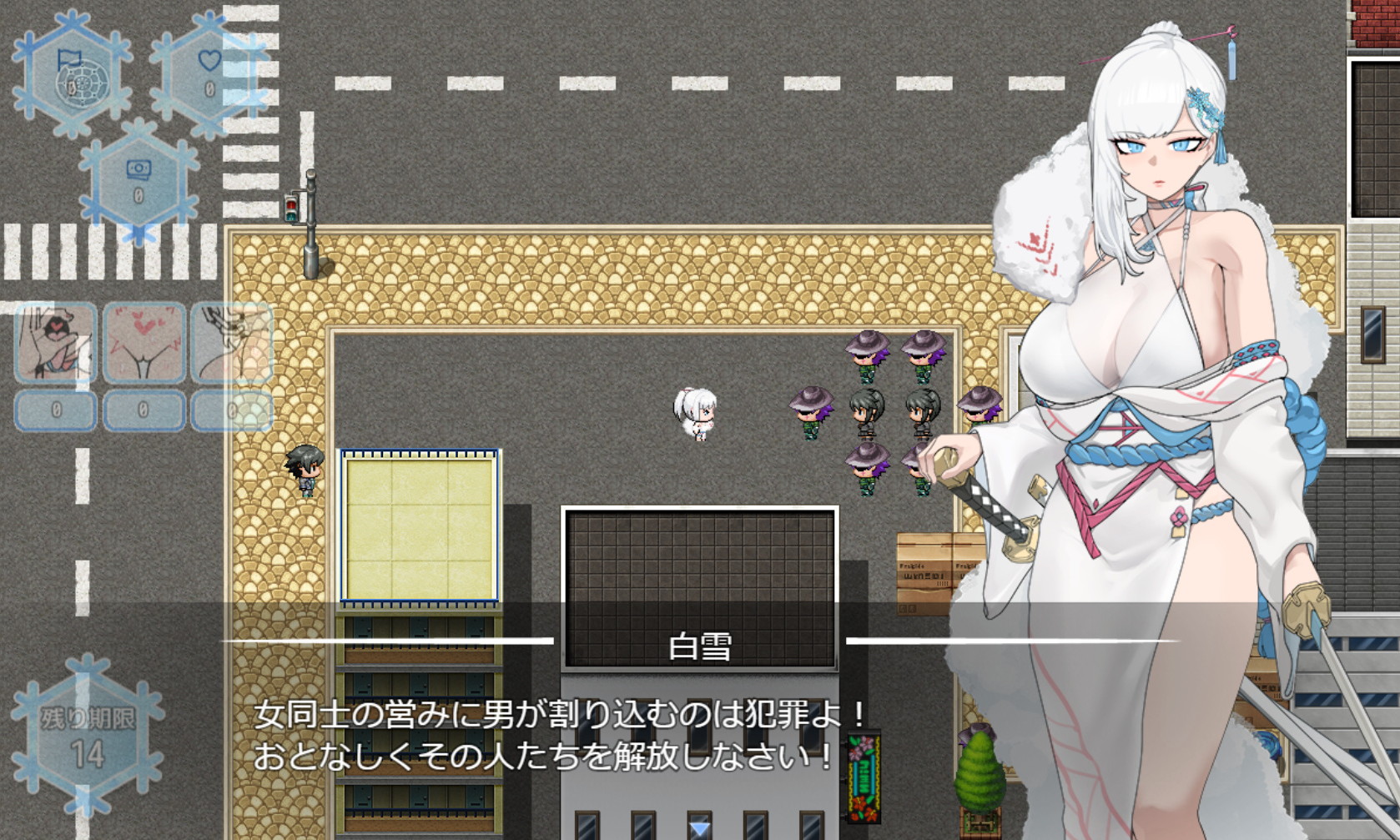 (あんまり分かってないんですが、14日間好きに行動できて、一回戦闘するか、一つエロイベントを見ると1日が経過する。