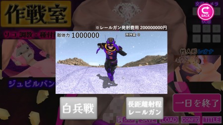 ピンキーリコの調教を担当するのは悪の戦闘員たる自分ですが、その場面から全体待機画面に移ってみると、そこにはスーツ解除を心持ちにしてる悪の総統が、リコの肢体を楽しみまくってる待機ムービーがでかでかと。(しかも3アングルから選択可、恐らく調教=脱衣状況も反映して変化する?)