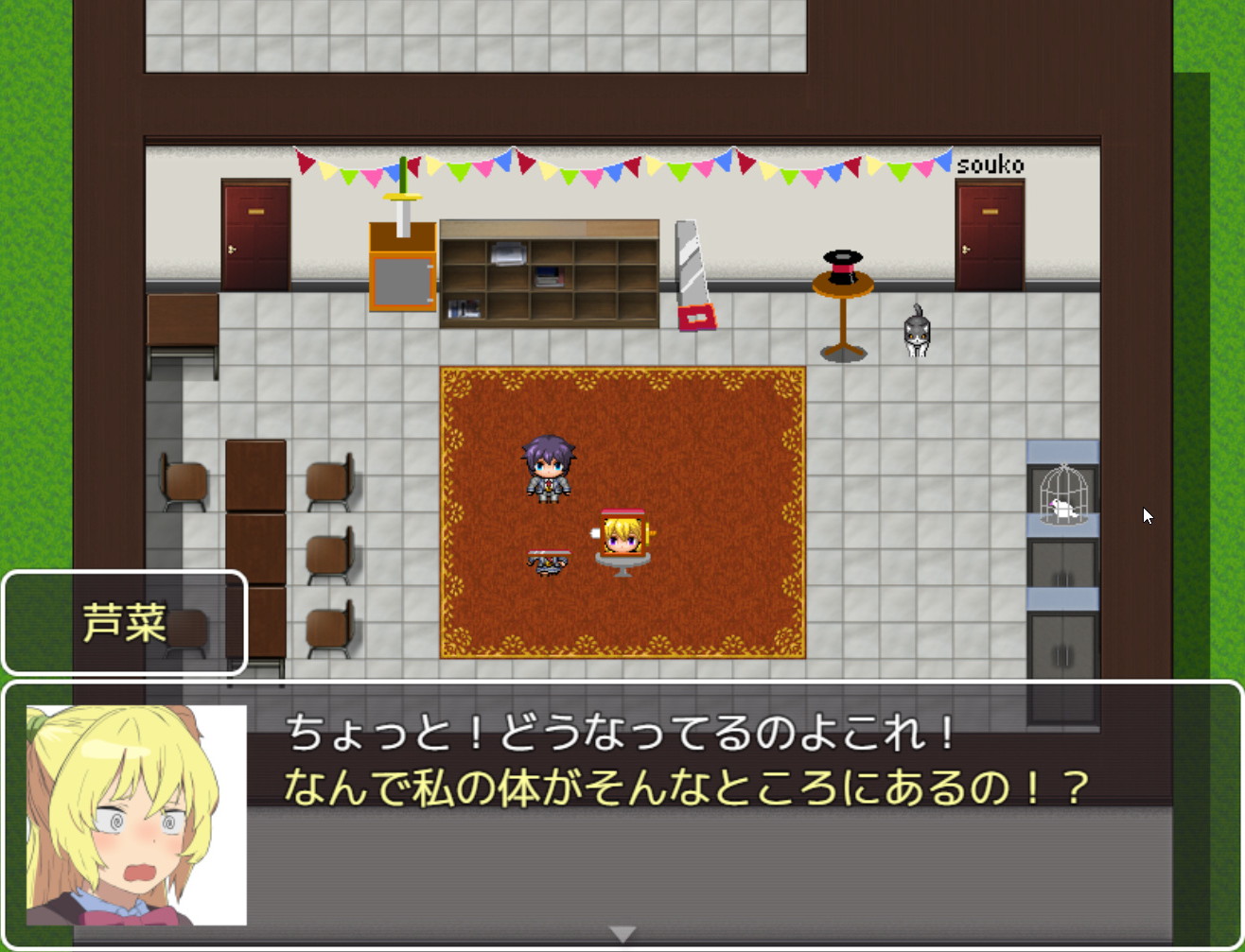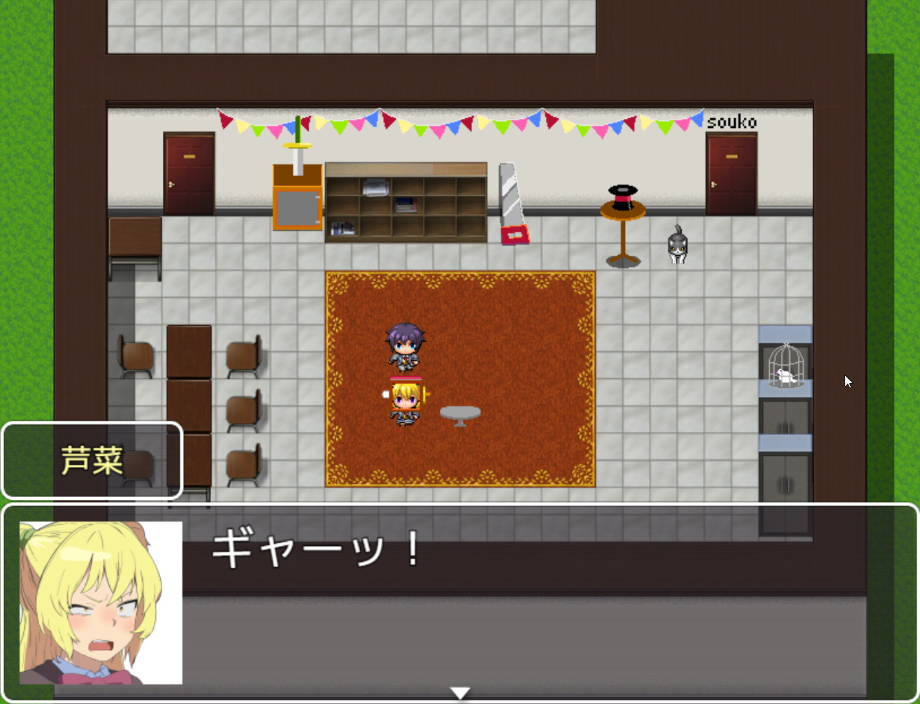 ゲーム的にはまぁADVなので、奇術に使う小道具を取って来ようね……と倉庫に二人して向かうものの、なぜかその先は異世界のダンジョンに繋がっており。