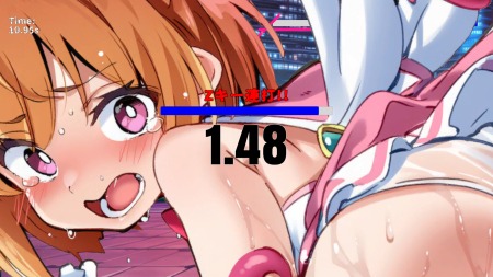 ボタン名称では「Hシーンへ」となってたので完全に油断してましたが、ここでも魔法少女最後の抵抗という事で、今度は上下に揺れる長方形のバーにこちらの照準を移動で合わせつつ、ボタン連打が要求される。