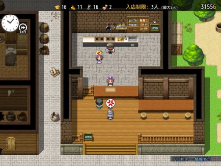 つまりお店を開くぞーという時には、メイン画面は見下ろしの歩行グラで展開、リアルタイムに訪れる客を捌いていく”現場”パートの始まりです。