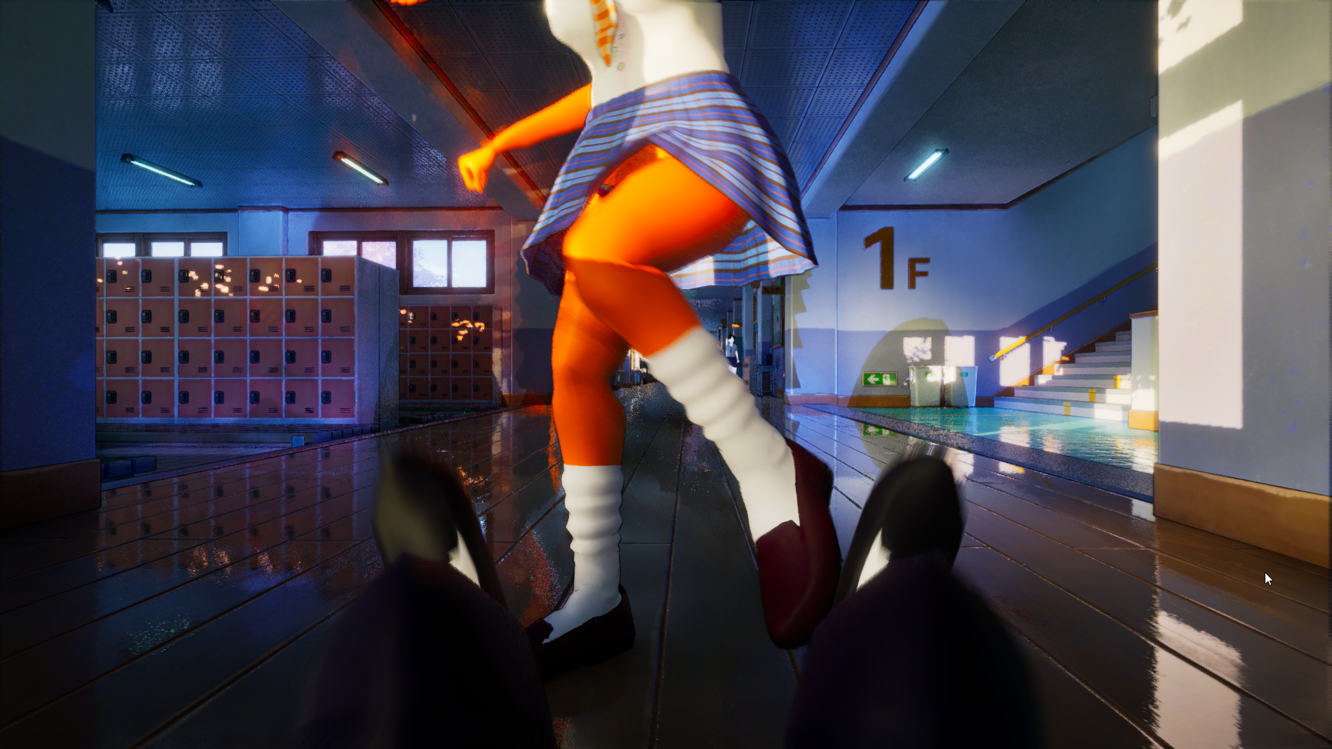 とまぁ初めから違和があった要素がこの大事な場面で炸裂しまして、まぁ正解を述べると、体育準備室ってそれぞれの方角に扉が3つくらい、あと近くに小室があってそこにも扉が3つくらいあるんですが、正解は「そのうちの一つ、何の変哲も無い扉の前で(判定の狭い)Eキーを押す」です。