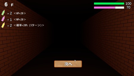 あとは手持ちアイテム、回復か一時的な確率UPとかをいかに使っていくか、のゲームになります。