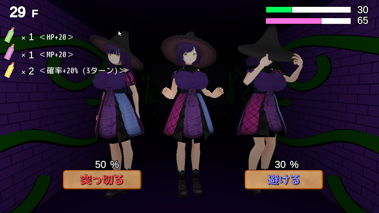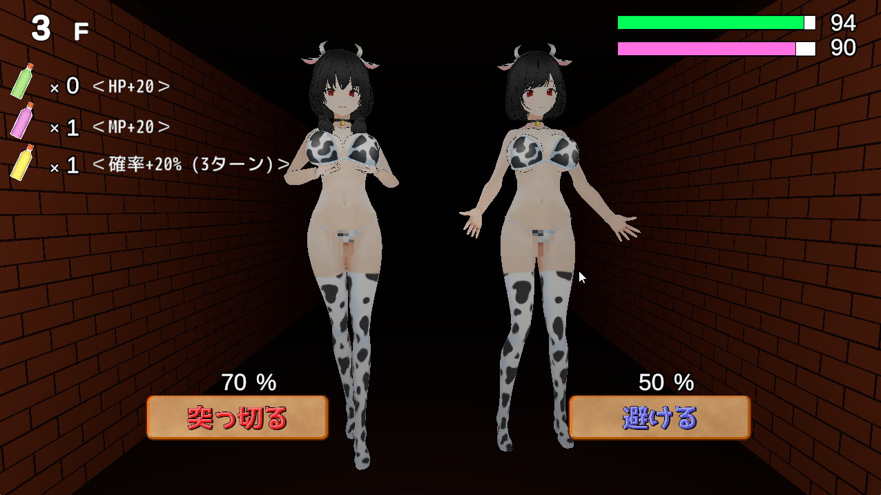 唯一の弱点としては、構造上、初めのほう、1~20F区域に属する牛娘のエッチが見にくいことでしょうか……(確率判定なので、負けようとしても勝って先に進んじゃう)