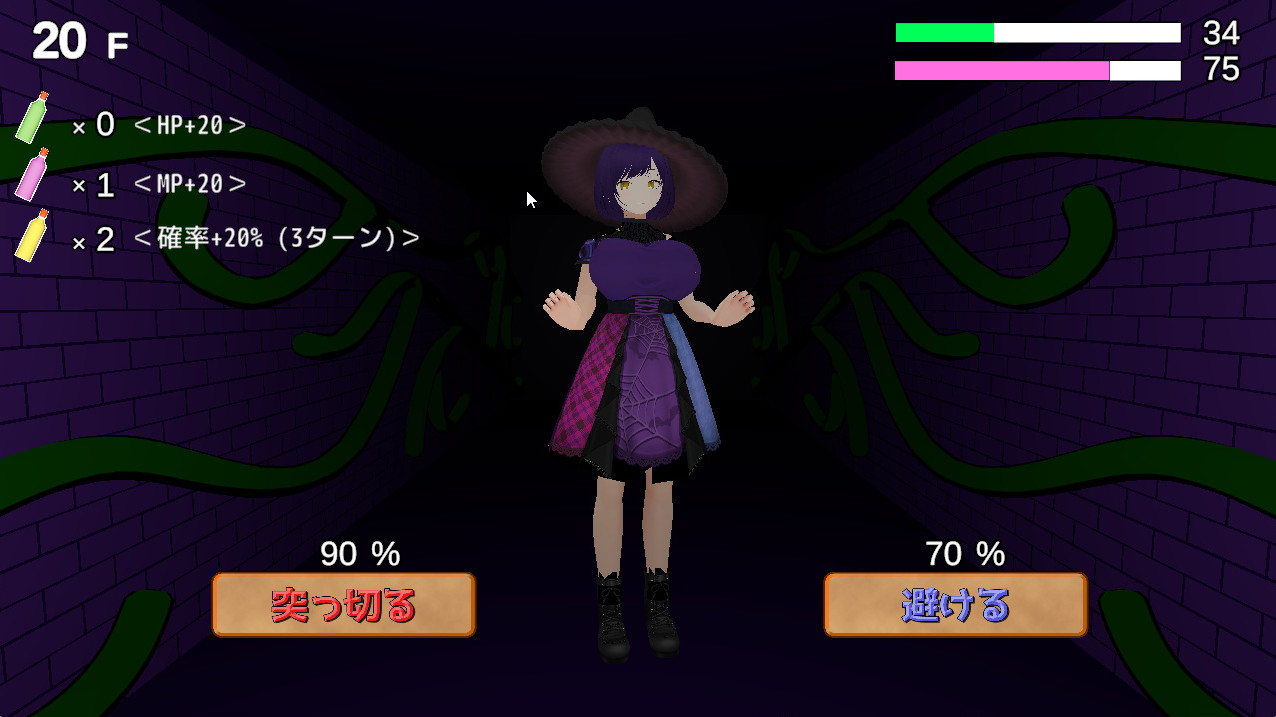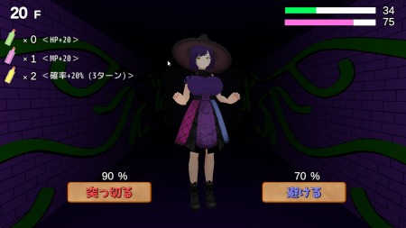 具体的には一歩進むごとに大体60~70%、高い確率で遭遇するモン娘を前にし、「突っ切る」か「避ける」、二択のどちらかを選ぶだけ。