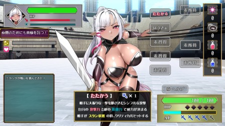 「意外にそこそこやれてるな」という感じで、半リアルタイムぽい戦闘、動きがやや大人しいとはいえ戦闘中に敵の必殺技で飛び掛かってくる、などもあり、むろん、初めは全然歯が立たないけど何度も挑むうちに次第に強くなる・戦闘中のエロも……と抑えている。